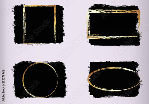 Set Of Black Paint Brush Stroke Dirty Design Element With Golden