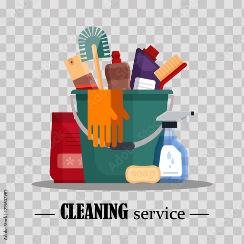 Cleaning Service Set House Cleaning Tools In Bucket On