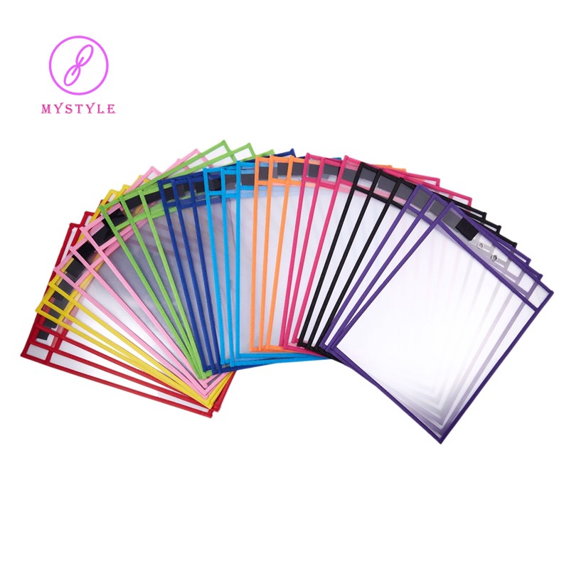30 Pack Pockets Pvc Transparent Sewn File Reusable Dry Erase Bag