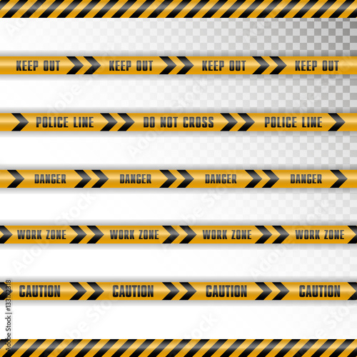 Vector Set Of 5 Caution Tapes With Shadow On Transparent