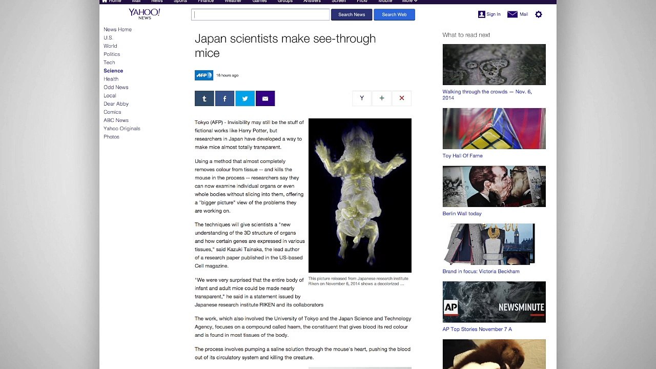 Transparent Nearly Invisible Mice Created By Japanese Scientists