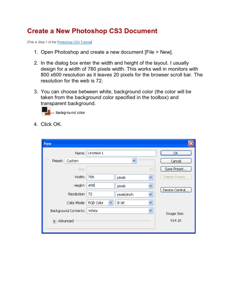 Create A New Photoshop Cs3 Document Adobe Photoshop Page Layout
