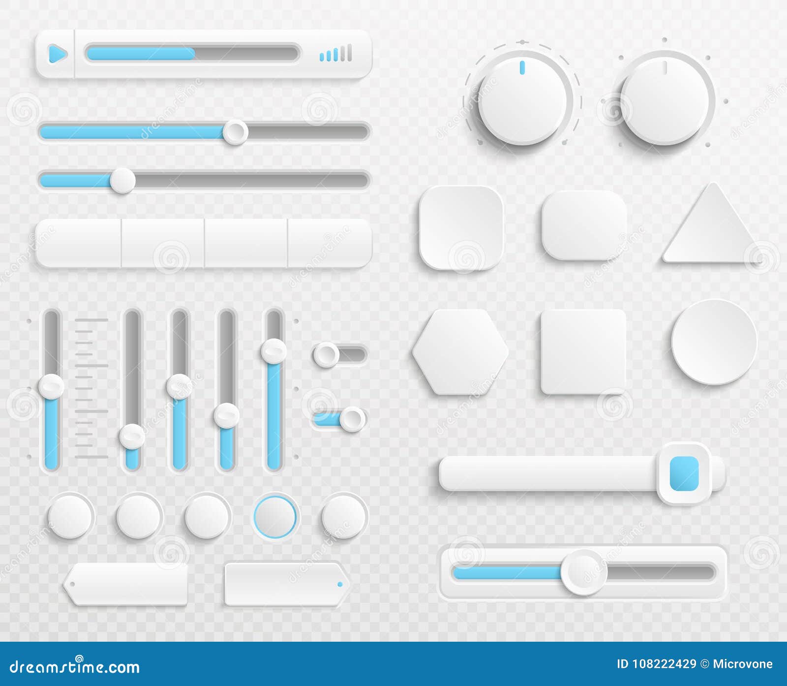 White Web Buttons And Ui Sliders Vector Set Isolated On