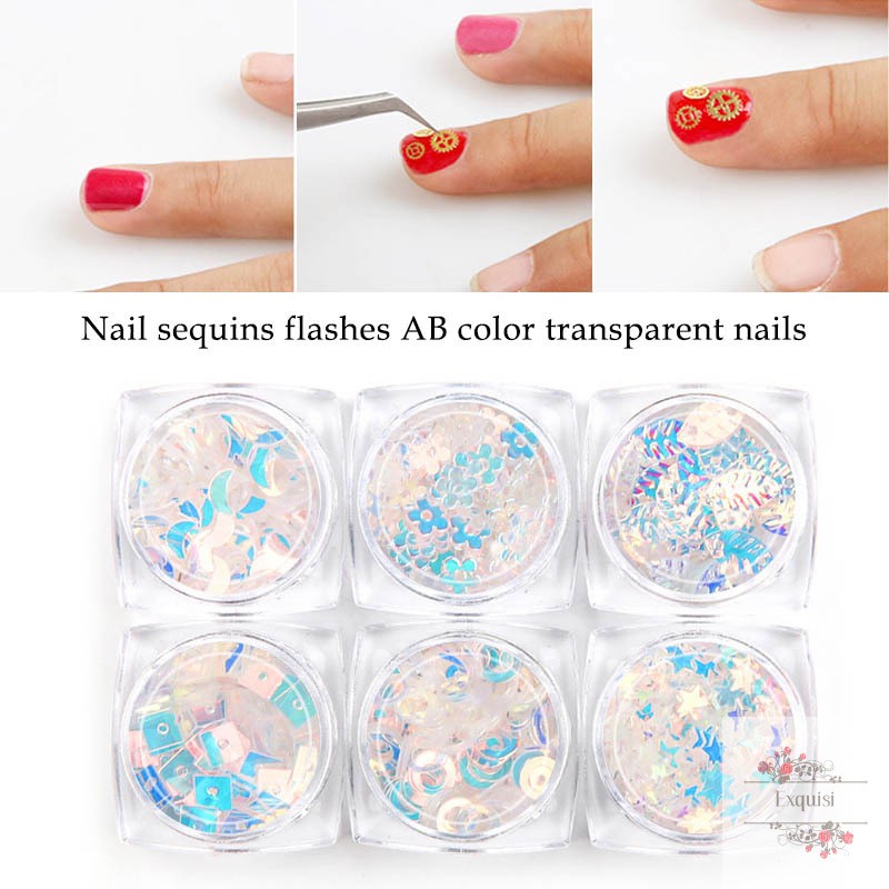 6pcs Set Nail Sequins Ab Color Transparent 6 Shapes Paillette