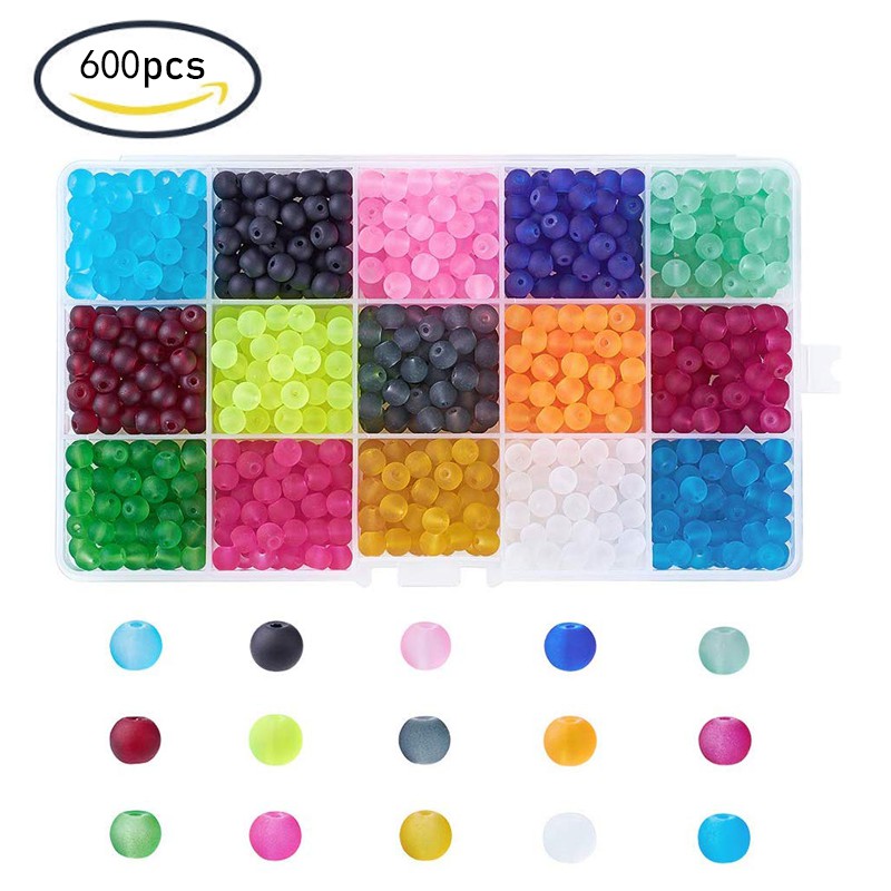 600pcs 6mm 15 Color Transparent Glass Beads Frosted Dyed Round