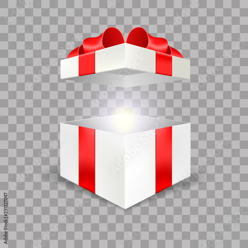 Opened White Gift Box Empty Angle Front View 3d With Red Bow And
