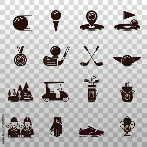 Collection Of Golf Equipment Icons Symbols And Silhouettes