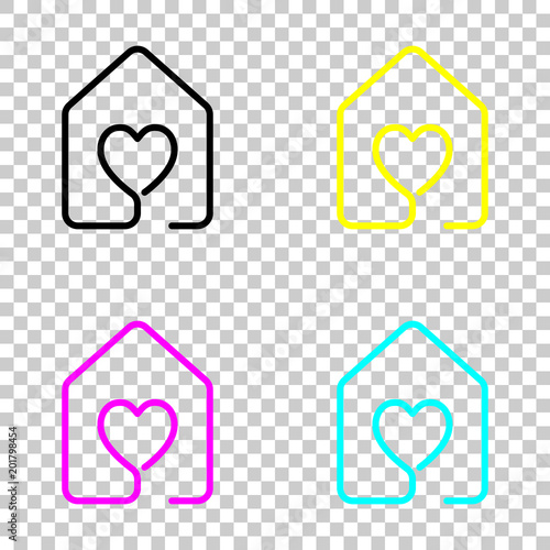 House With Heart Icon Line Style Colored Set Of Cmyk Icons On