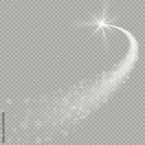 Light Trace Effect Stars Bursts With Snowflakes Isolated On