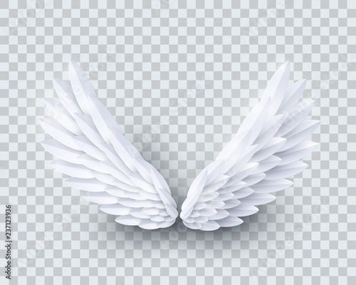Vector 3d White Realistic Layered Paper Cut Angel Wings Isolated