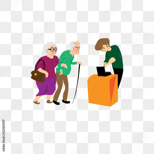 Old People Waiting In A Queue At Counter Vector Icon Isolated On