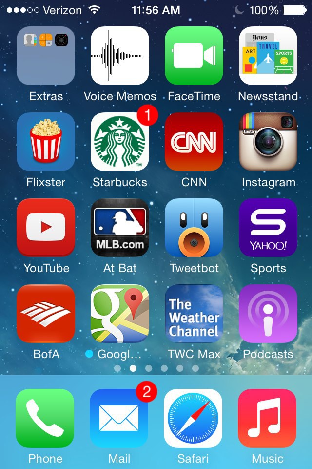 What Is On The Default Home Screen Of An Iphone 5 In Ios 7