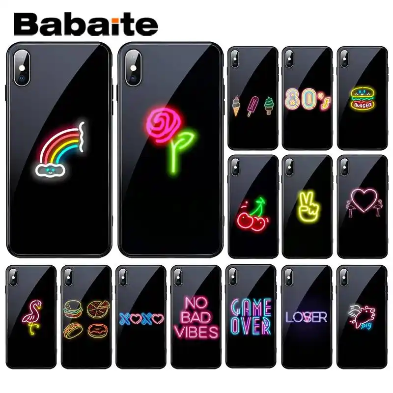Babaite Black Background Fluorescent Small Font Neon Glass Cute