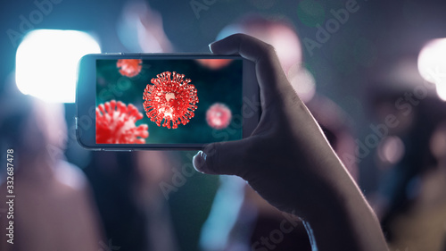 Hand Holding Smart Phone With 3d Coronavirus Or Covid 19 Screen