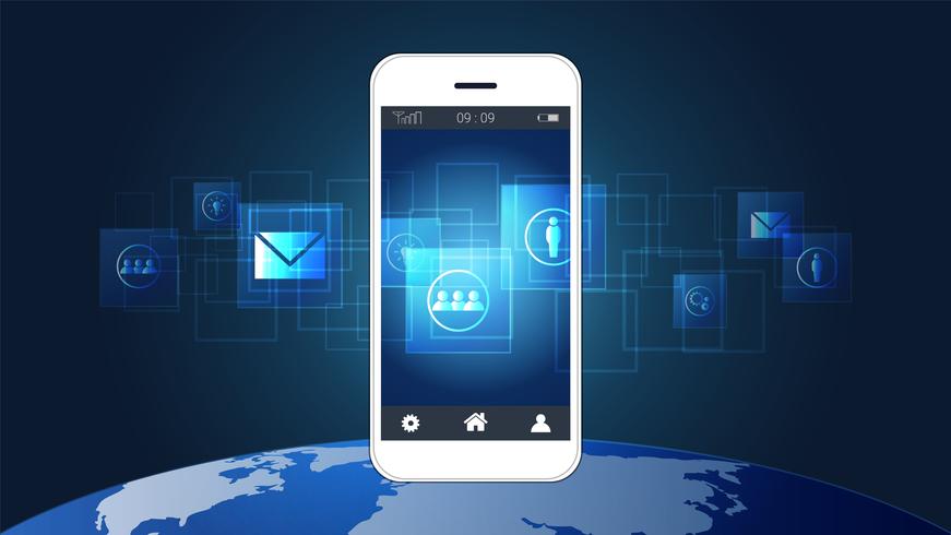 Smart Phone Screen Showing Digital Circuit Boards And World Map
