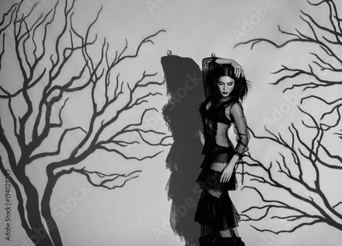 An Alien Girl In A Black Transparent Vintage Dress Posing