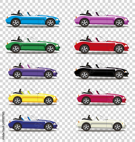 Set Of Modern Cartoon Colored Cabriolet Cars Isolated On