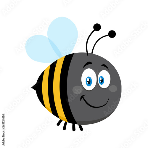 Smiling Cute Bee Cartoon Character Vector Illustration Flat