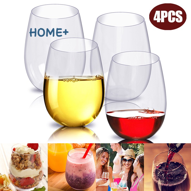 4 Pcs Stemless Transparent Wine Glass Set Plastic Wine Drink Cup